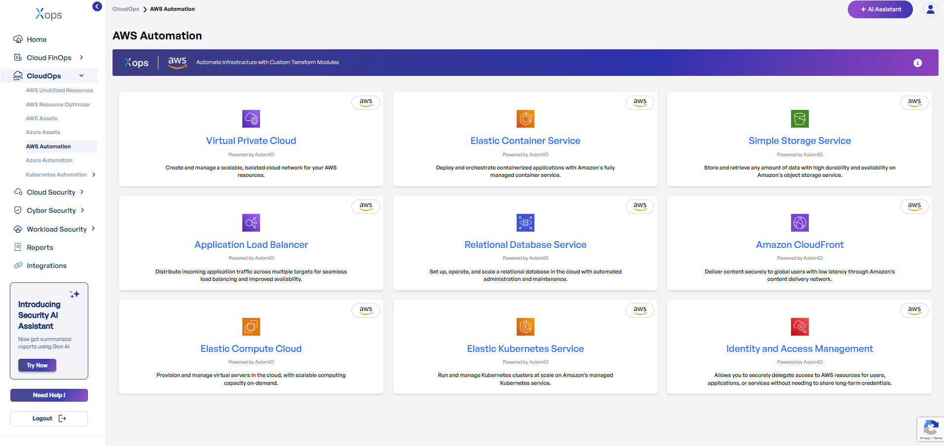 In X-ops, navigate to CloudOps → AWS Automation.