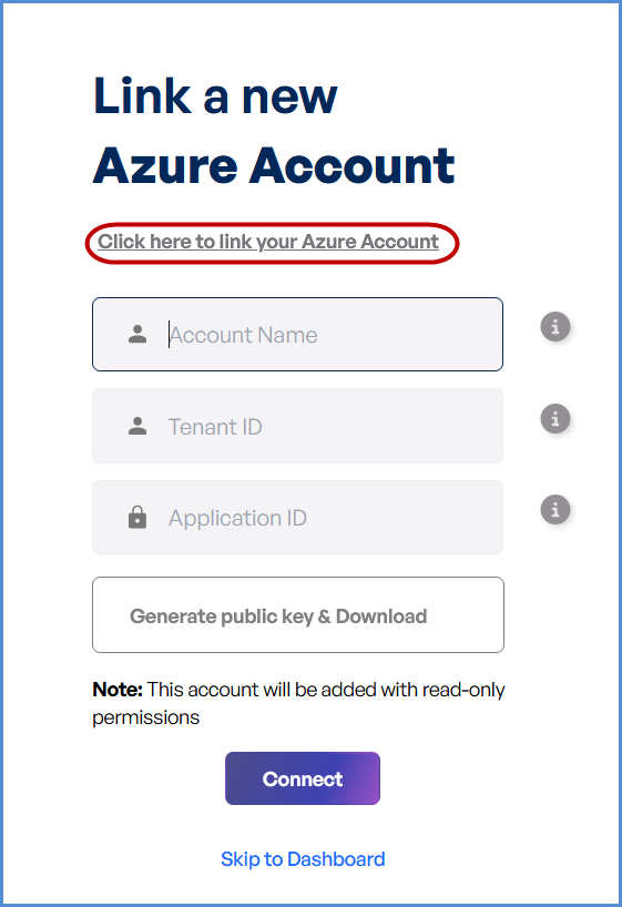 - Click on the Azure card to open the “Link a New Azure Account” page.