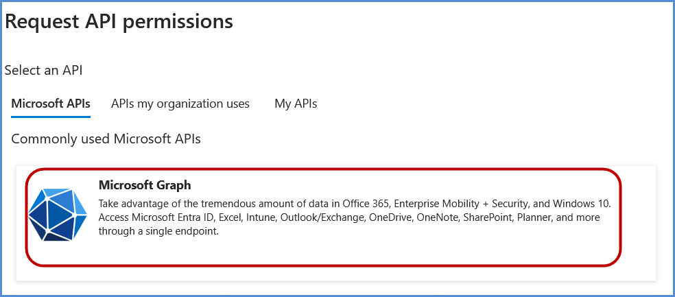 - Select Microsoft APIs and click on Microsoft Graph.