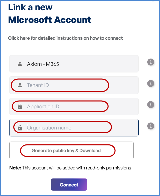 - Click on the Microsoft card then click on M365 to open the “Link a New Microsoft Account” page.