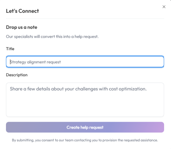 • Enter a clear and concise title for your request (for example: Strategy alignment request, Issue with scan results, or Access support).